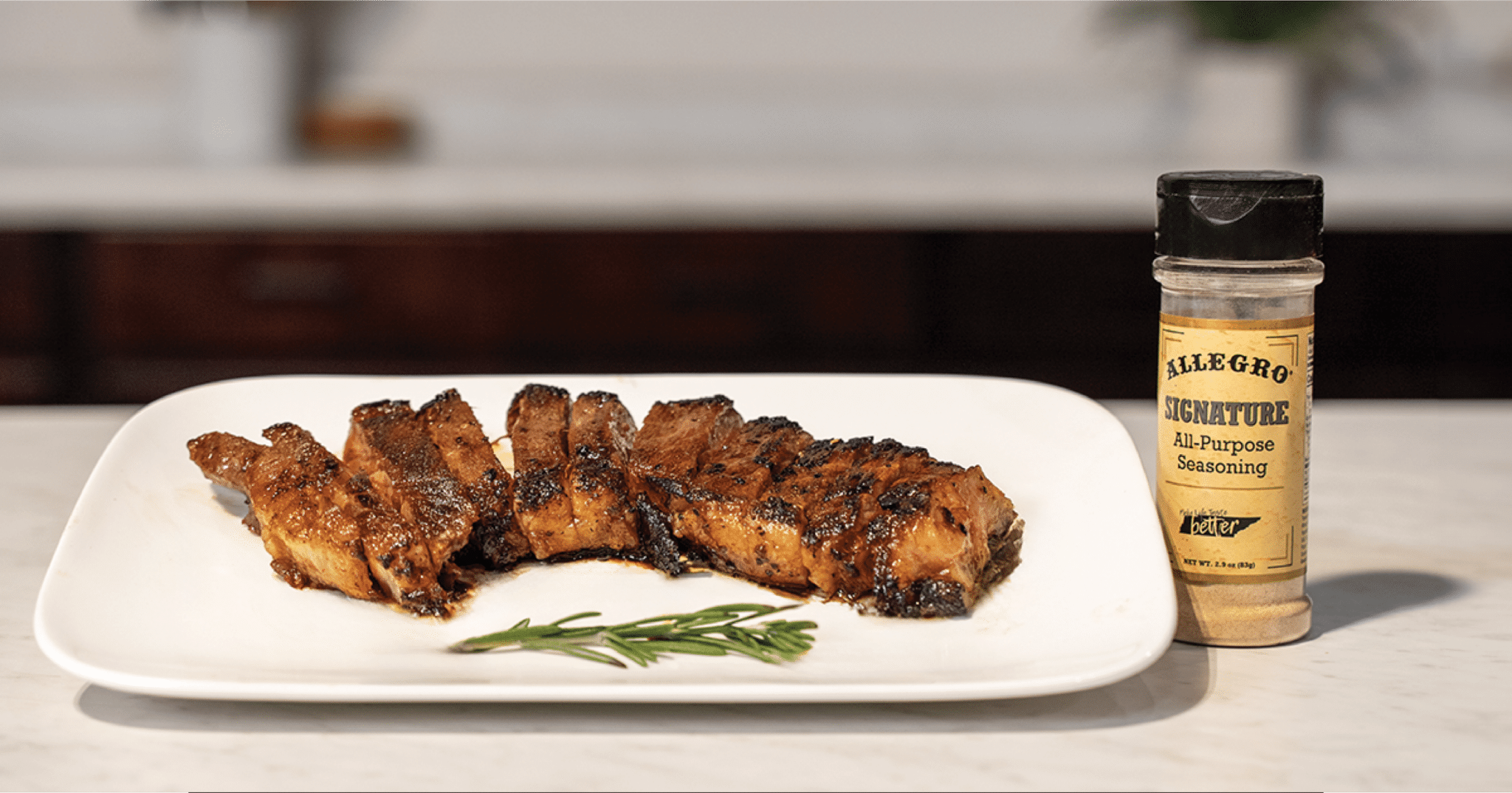 Ingredients 1-2 Thick Cut New York Strip Allegro Signature Seasoning 1 Tbsp of Vegetable Oil 2 Tbsp Butter